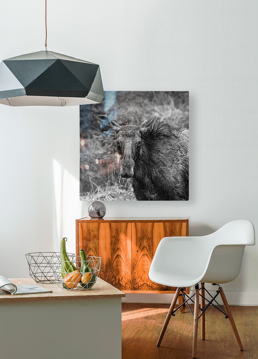 Monochrome Moose Portrait HD Sublimation Metal print