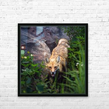 Enveloped in a tranquil embrace, this solitary fox among lush greenery and rocks serves as a poignant reminder of the profound stillness and untouched...[+]