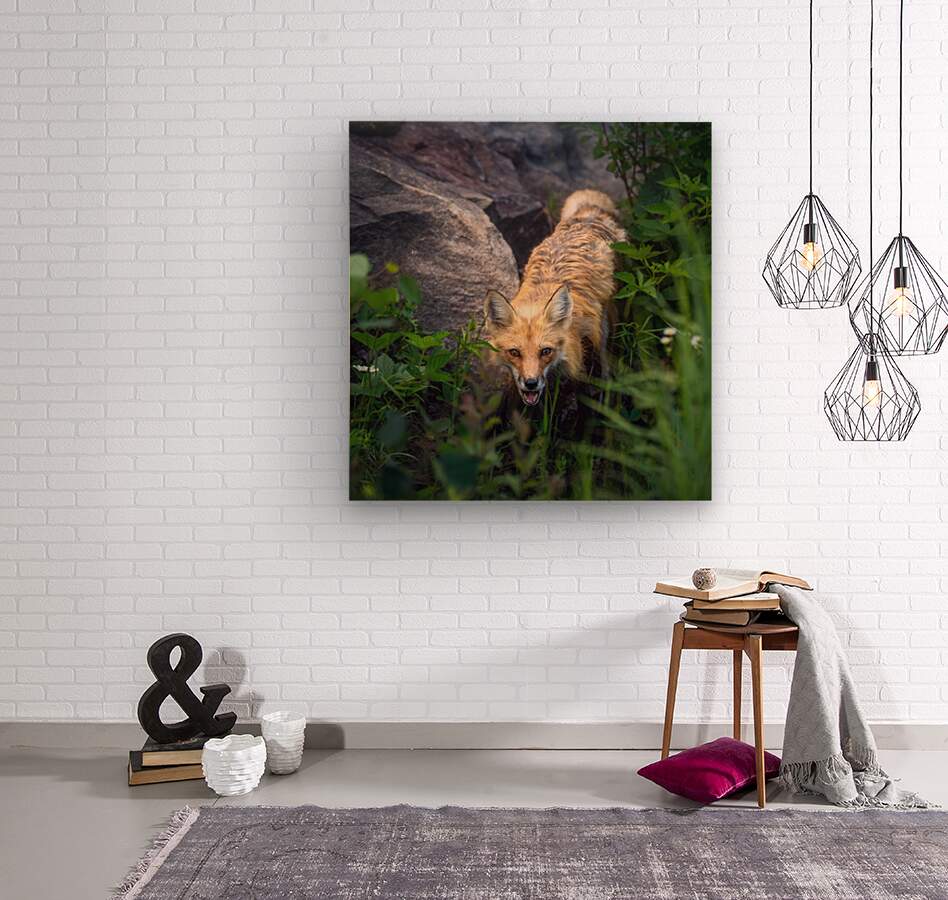 Enveloped in a tranquil embrace, this solitary fox among lush greenery and rocks serves as a poignant reminder of the profound stillness and untouched beauty that nature offers.