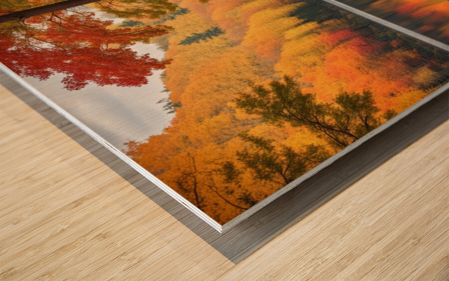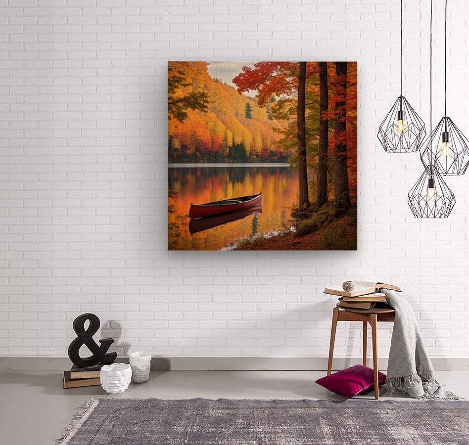 Floating peacefully on a glassy lake, embraced by the vibrant colors of autumn's finest display.