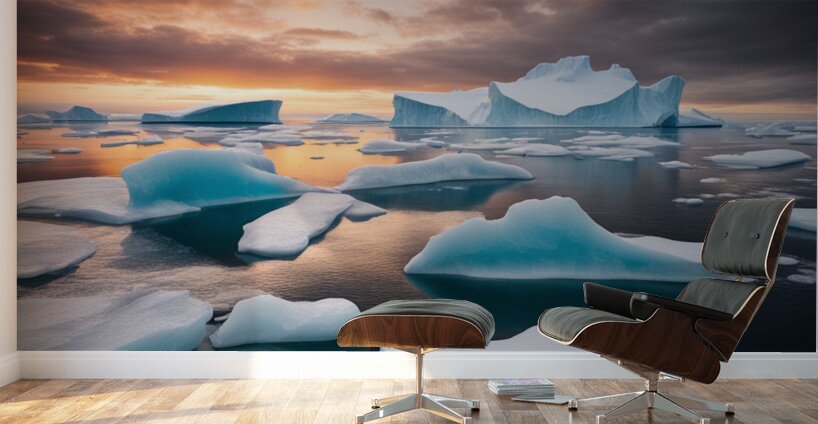 Witnessing the serene beauty of icebergs and sea ice glowing under a magnificent sunset is truly mesmerizing.