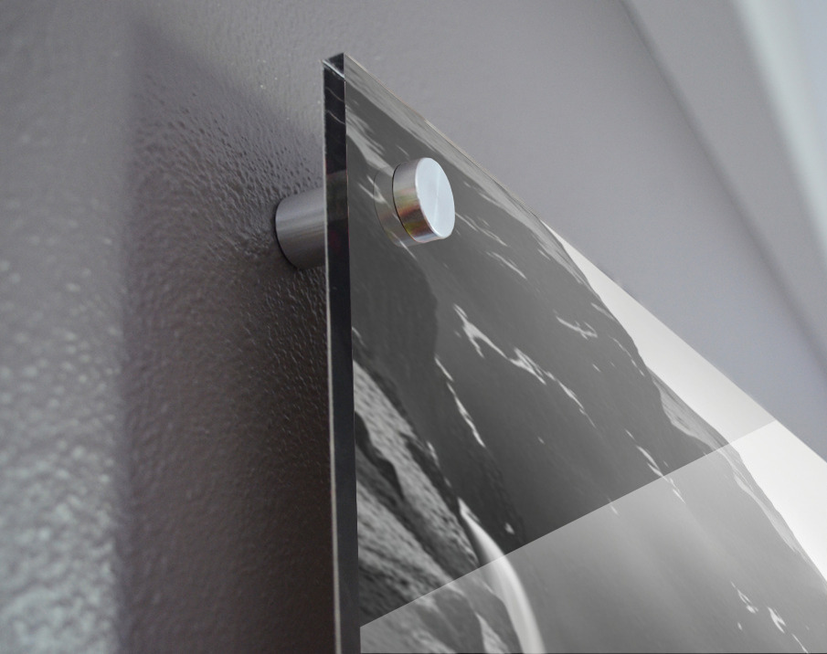 Printed to the edge - Ready to hang - provided with 4 premium polished aluminum stand off ( wall screws and mounting hardware provided )