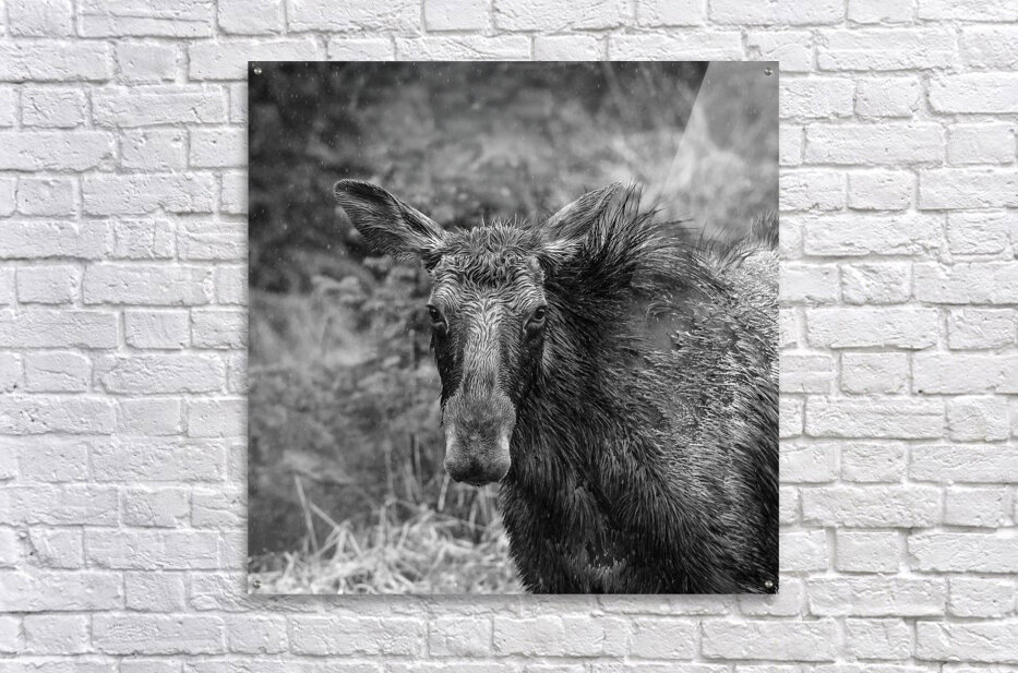 Monochrome Moose Portrait HD Sublimation Metal print