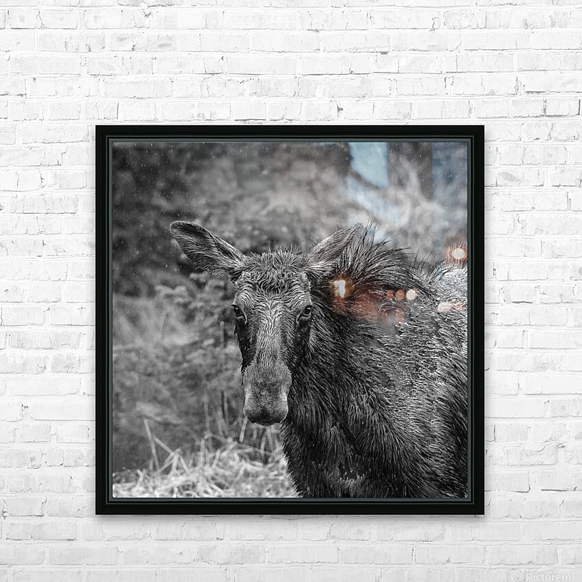 Monochrome Moose Portrait  HD Metal print with Floating Frame on Back