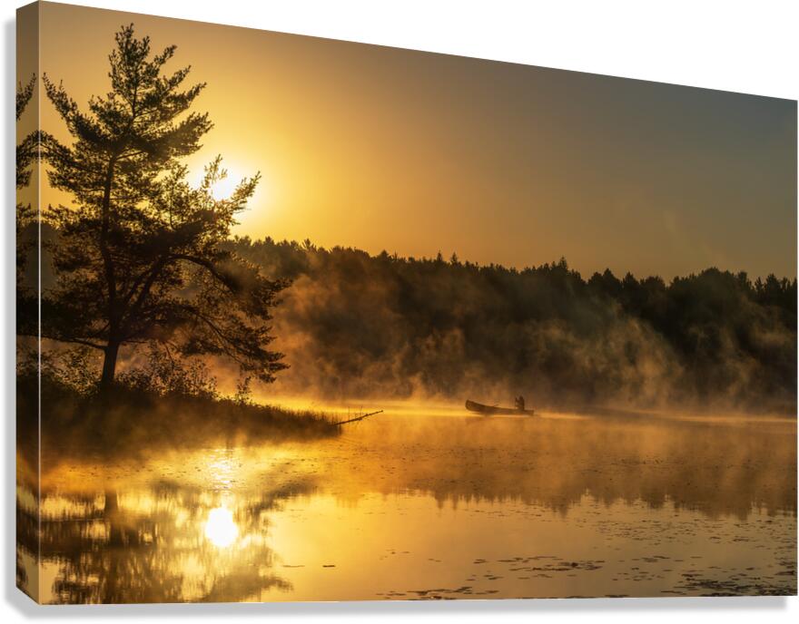 Algonquin Park has magical sunrises. I witnessed one during a crisp fall morning where nature provided fog, and perfect light. A canoeist on the lake allowed for a perfect composition.